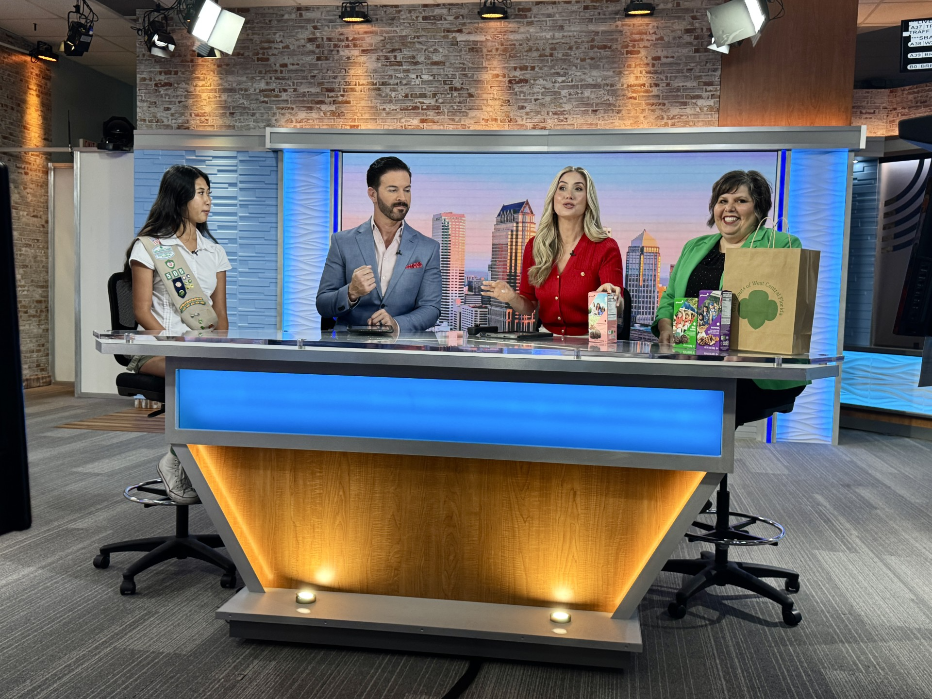 Tampa Bay News Live featured an exciting morning segment between 8:00-8:30am highlighting Girls Scout Fest Weekend at Wiregrass Ranch Sports Campus @ 10am-2pm (09-27-2025) and the unveiling of the new GS Cookie 2026 flavor, Exploremores. The segment showcased empowering leaders, including GSWCF CEO Mary Pat King, and Senior Girl Scout Ambassador Marianalynn, who has developed exceptional leadership skills over a decade of being a Girl Scout. 10TampaBay News Anchors Caitlien Lockerbie and Jameson Uhler led the inspiring conversation.