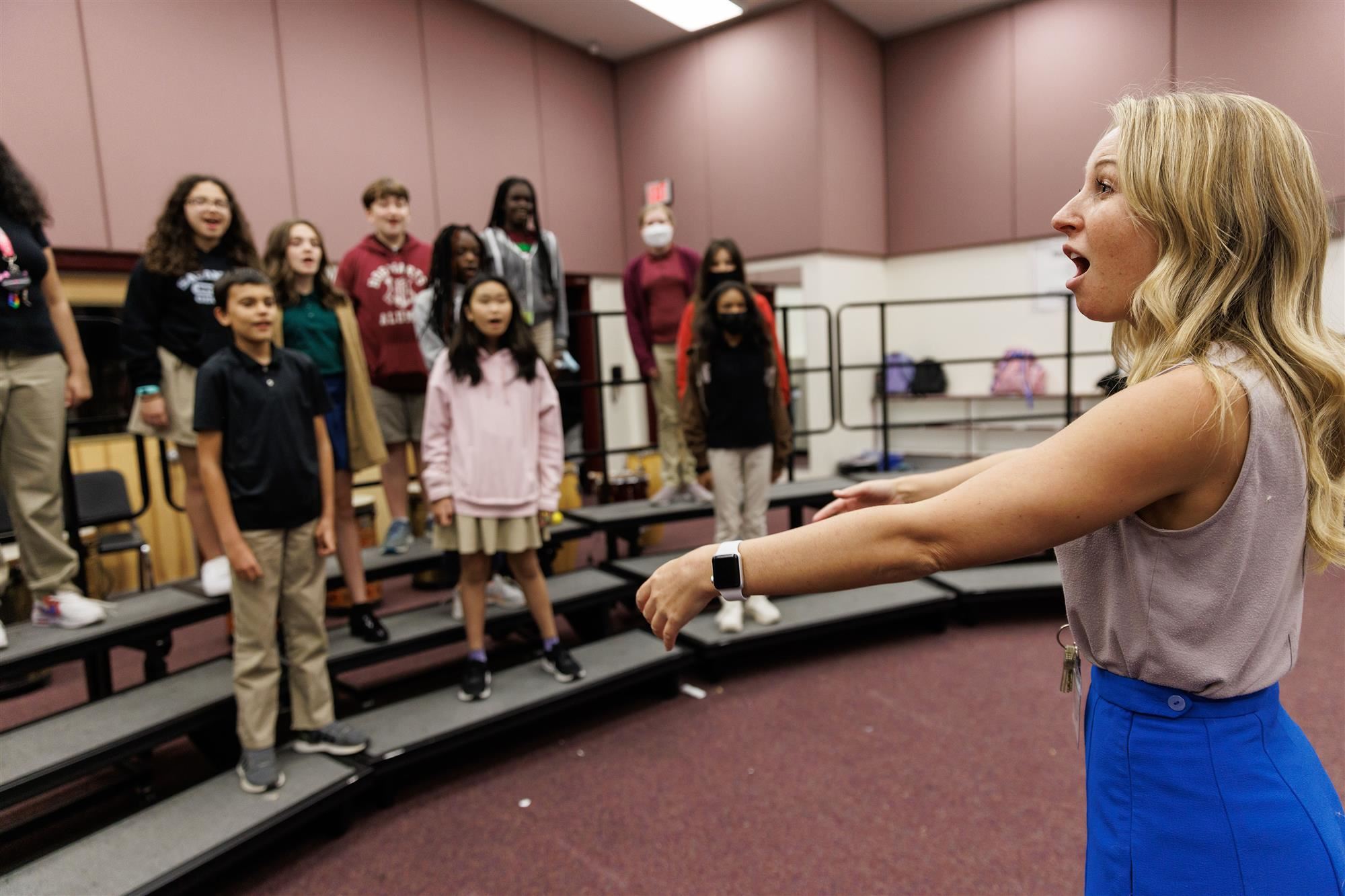 Directed by Ms. Ana Torres—whose favorite part is watching students blossom into expressive and creative artists through music—students learn to perform both solo and as part of an ensemble, all while discovering and refining their unique sound. Throughout the year, students participate in several concerts and events that showcase their talent and growth. Inspiring rehearsals, memorable performances, and meaningful connections make this program a truly transformative experience for every singer.