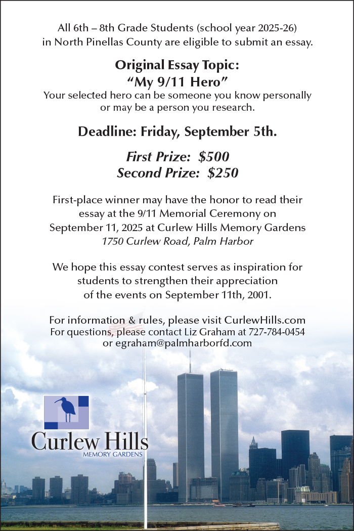 Last, I have attached a few flyers about school and community opportunities. These items include: The AVID Tutor Flyer and the 9-11 Writing Contest Flyers.