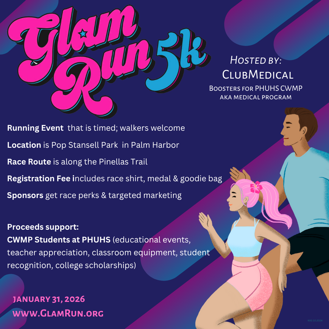 Last, I have attached a few school/community flyers: Glam Run 5K Flyer, Gibbs High PCCA Flyer, and the Players Sports Academy Flyer.