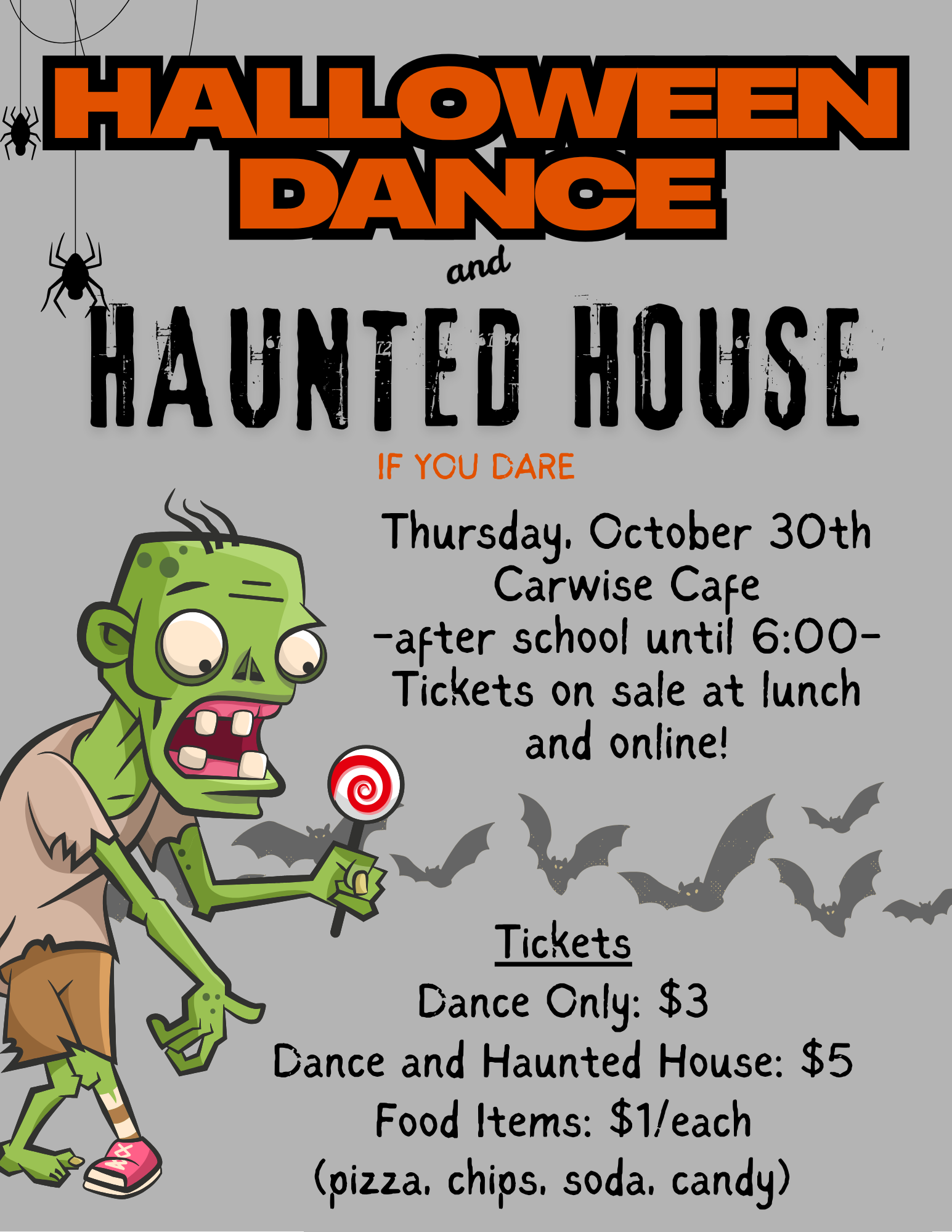 First, I want to start by thanking our awesome PTSA. They put on a great Halloween Dance. Also, their haunted house was amazing! Thank you so much for putting together a great event for our students!